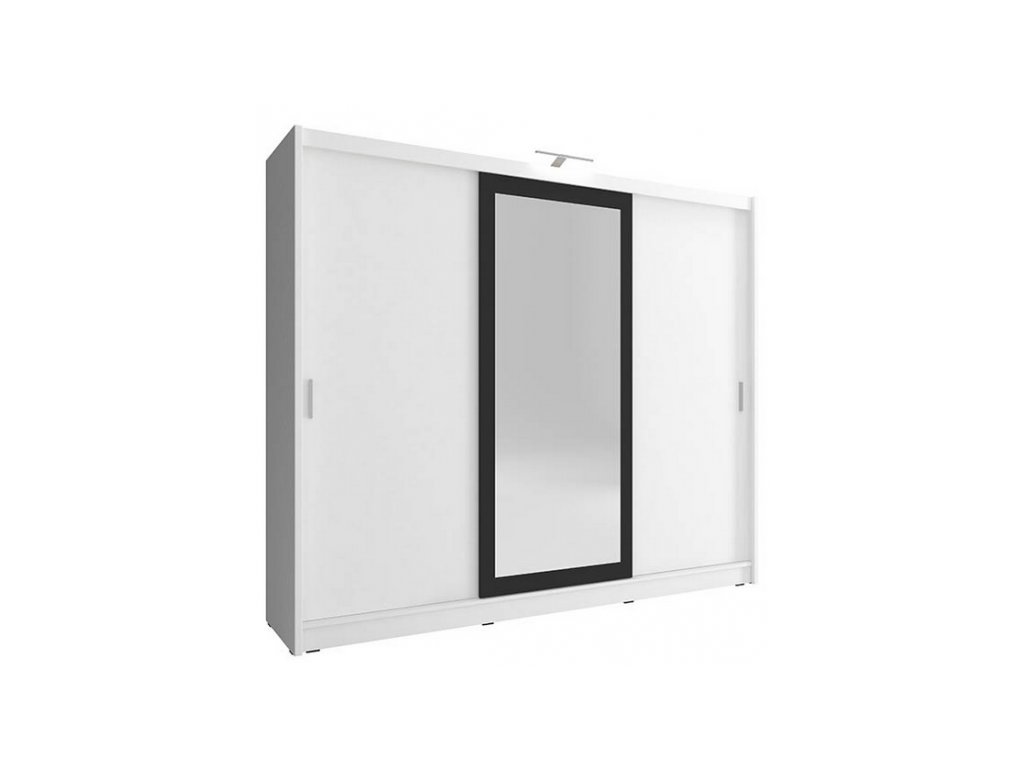 Skříň má tři posuvné dveře a uprostřed zrcadlo, díky své velikosti nabízí více úložného prostoru.