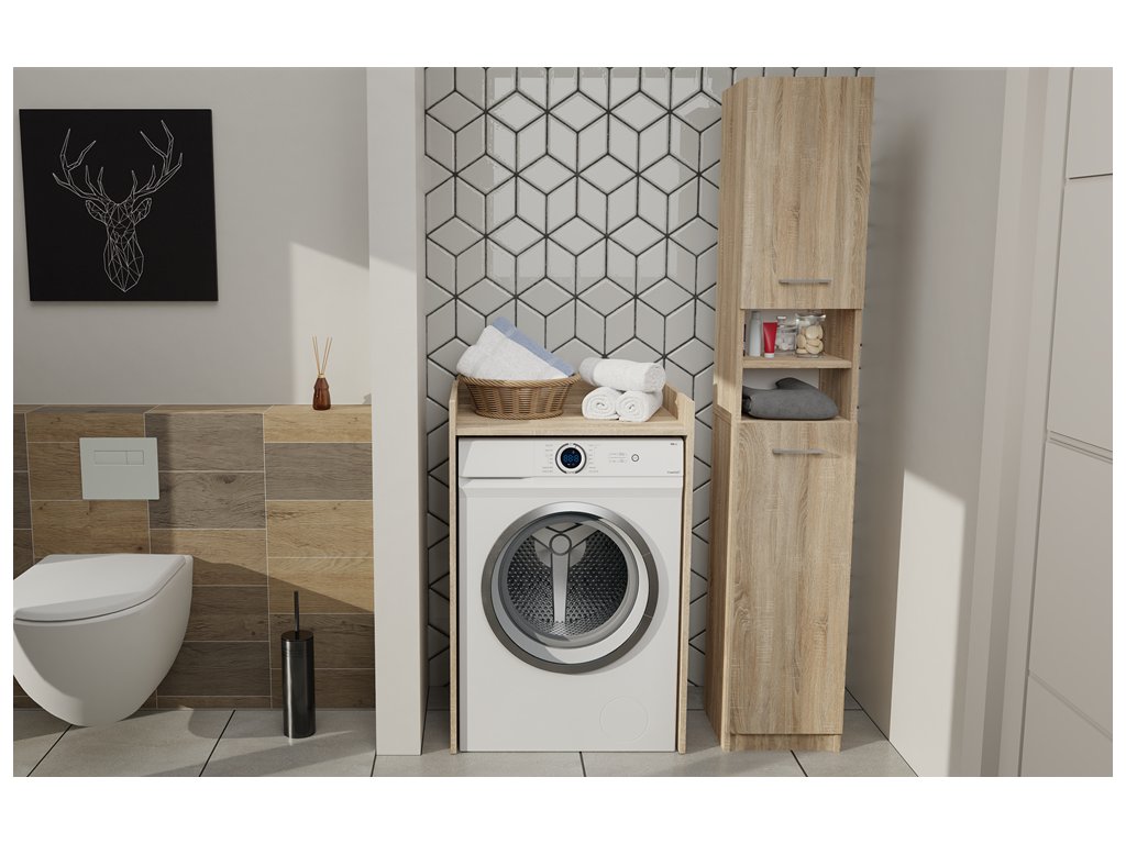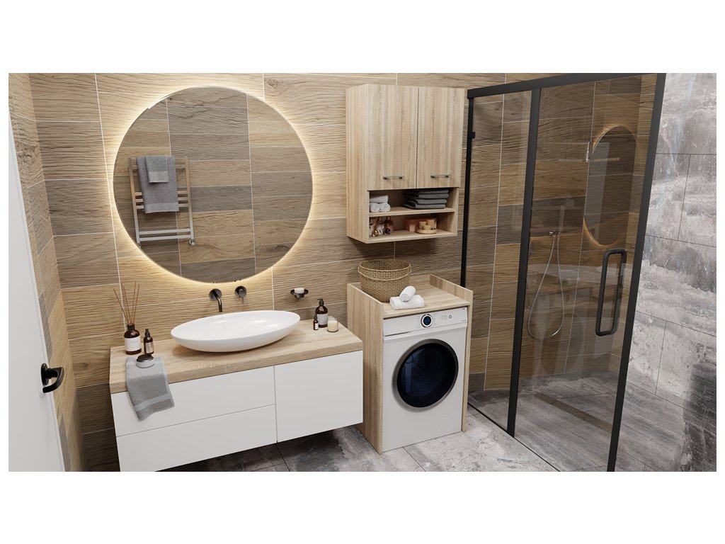 Moderní koupelnová skříňka Pema v minimalistickém designu je dokonalým řešením pro malé koupelny. Splní očekávání všech, kteří oceňují praktická řešení. Skříňka je vyrobená ze snadno udržovatelné laminované desky, hrany jsou povrchově upravené ABS plastem (vyznačuje se vysokou mechanickou a chemickou odolností).
