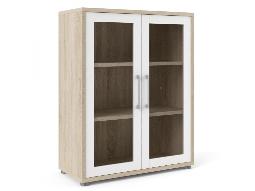 Skříňka Office 80400/126 dub sonoma/bílá/sklo