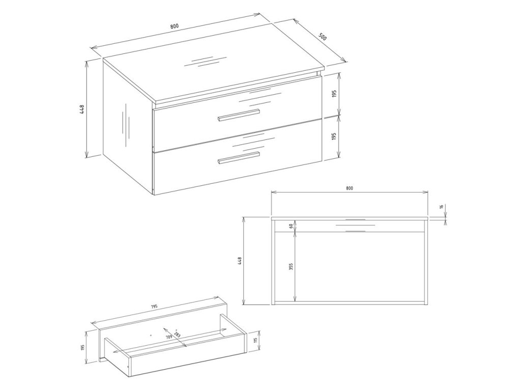 Tato koupelnová skříňka je ideální pro umyvadlo na desku (není součástí balení) a nabízí dvě hluboké zásuvky bez výřezů pro maximální využití prostoru. Doporučujeme použít nástěnný sifon.