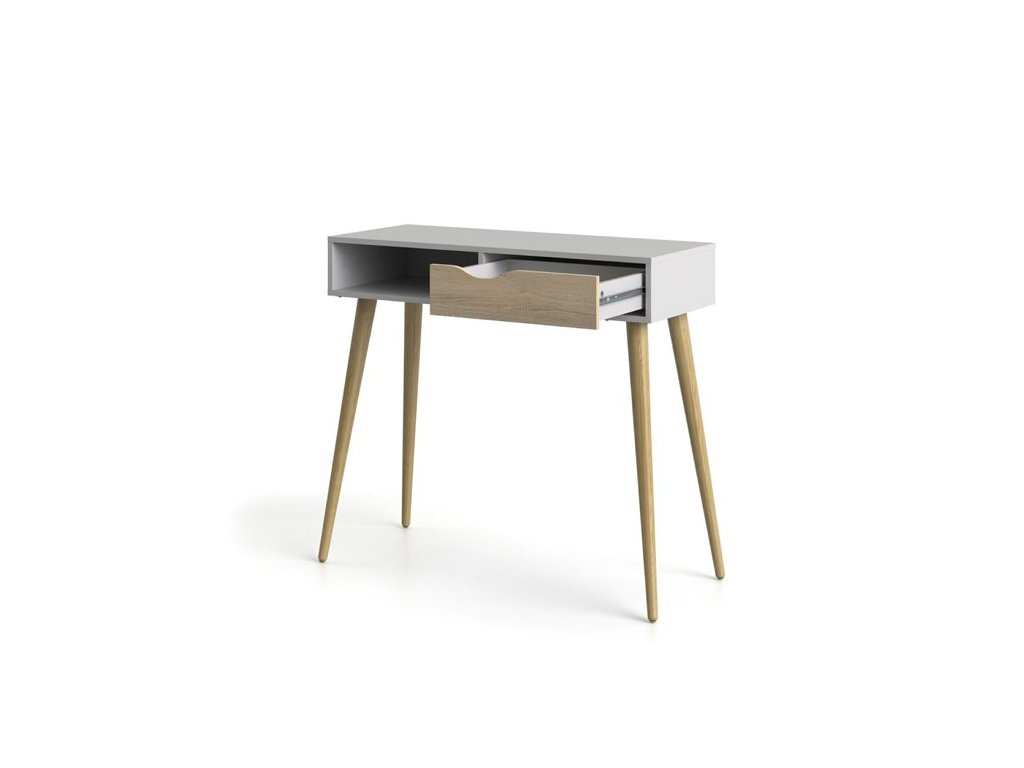 Pokud máte rádi Retro styl, pak je tato kolekce nábytku stvořena pro Vás. Nábytek je zhotoven z lamina o tl. 15 mm, které je odolné a snadné na údržbu. Díky rozmanitosti nabízených prvků, které kolekce Retro nabízí, si můžete sestavit obývací pokoj, jídelnu, ložnici, kancelář, nebo předsíň. Stolek je vybaven praktickou zásuvkou, do které můžete uložit drobnosti a také odkládací policí. Díky svému provedení má univerzální využití. Retro vzhled zdůrazňují vysoké šikmé nožky a obloukové výřezy místo úchytek. Stolek nabízíme ve dvou barevných provedeních. Je dodáván v demontu a součástí je montážní plánek včetně všech potřebných spojovacích materiálů. Vyobrazené dekorace nejsou v ceně.