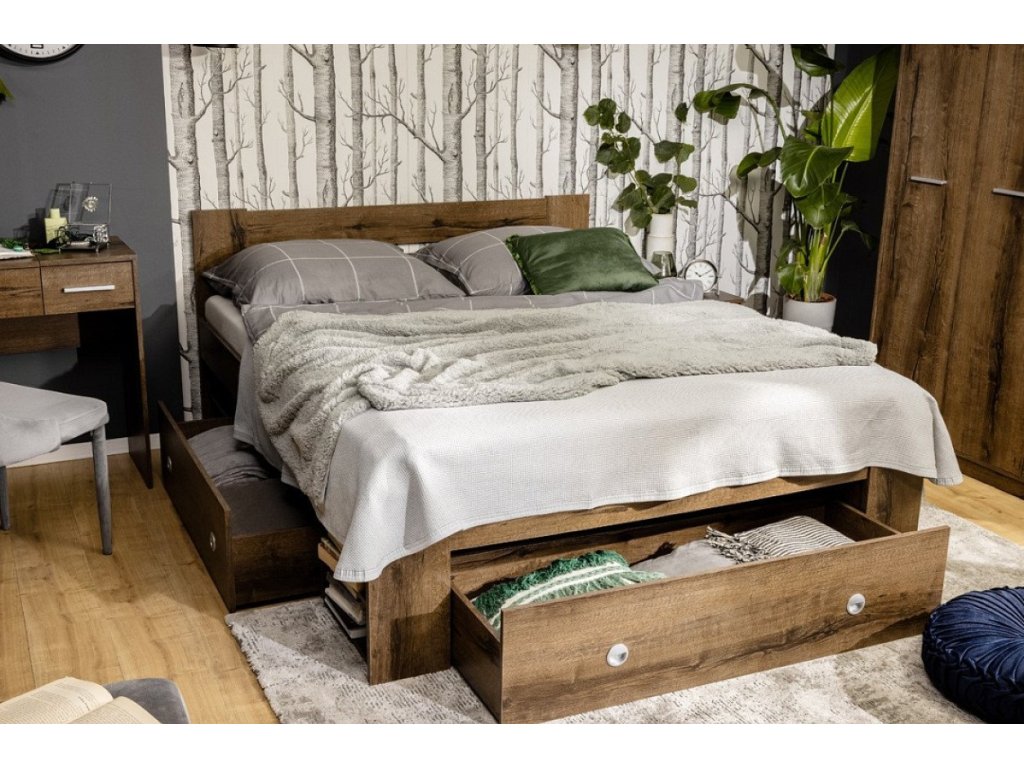 Sada obsahuje dva boční šuplíky (104 x 46 cm) a jeden větší přední šuplík (124 x 46 cm), které vám poskytnou velkorysý prostor pro uložení lůžkovin, sezónního oblečení, dek nebo čehokoliv dalšího, co potřebujete mít po ruce, ale zároveň úhledně schované. Manipulace se zásuvkami je naprosto snadná díky kolečkům a zapuštěným kulatým úchytkám, které neruší čistý design.