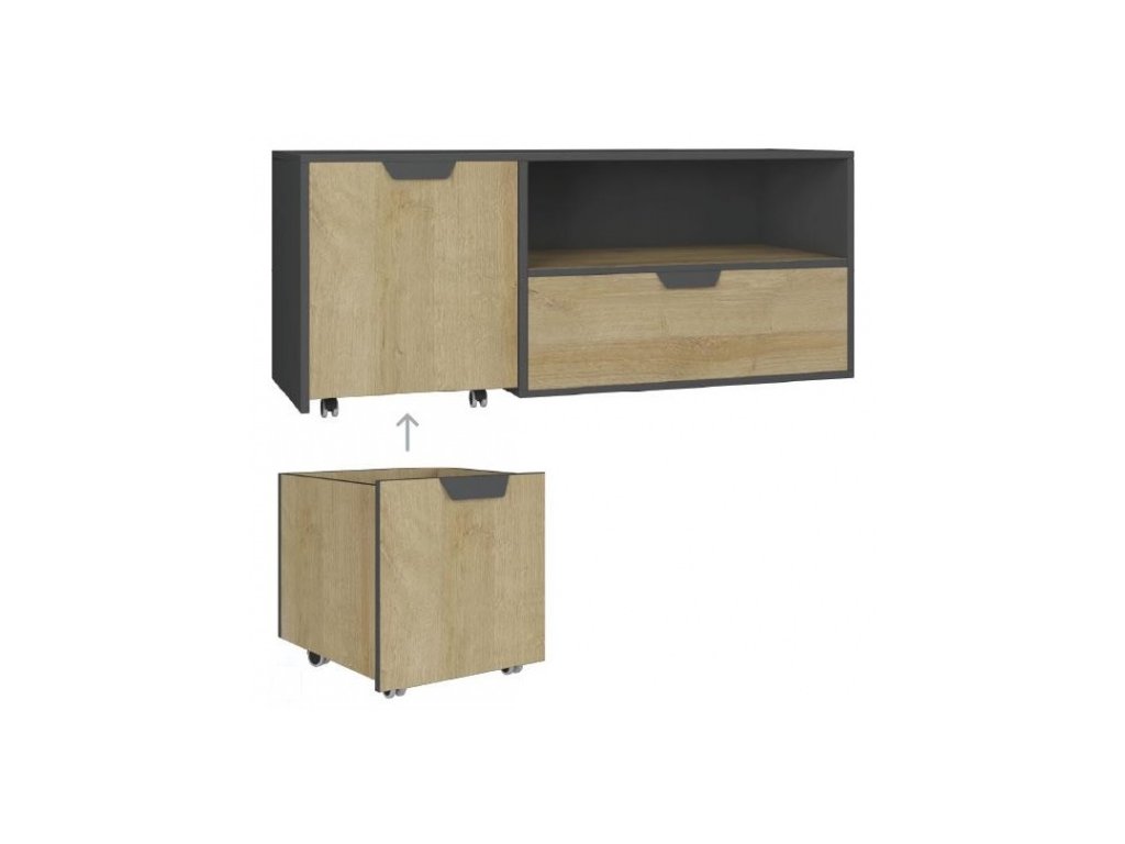 Ve spodní části RTV stolku je umístěn praktický kontejner na kolečkách, který se může vysunout.