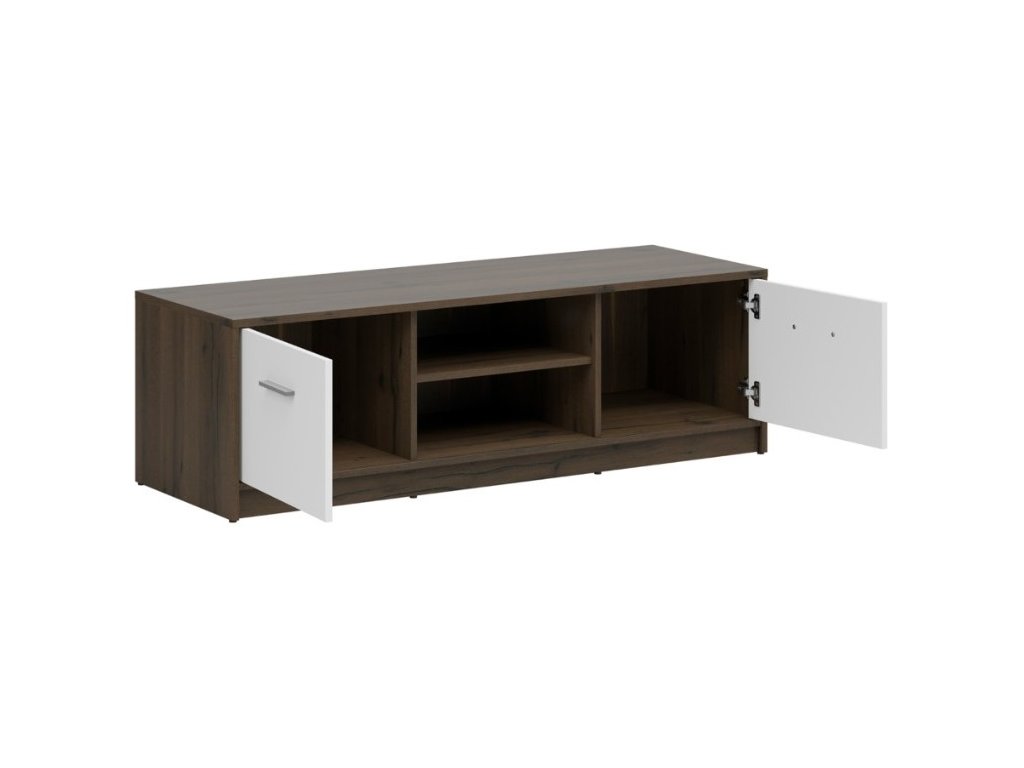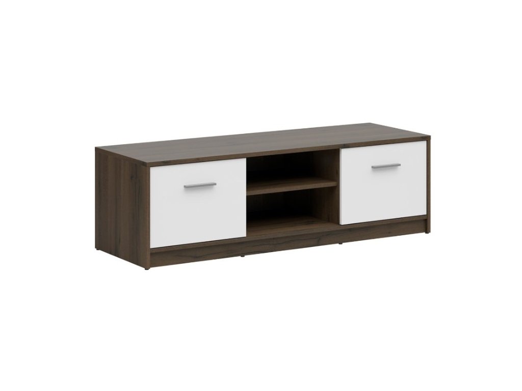 Vdechněte svému obývacímu pokoji svěží a moderní nádech s televizním stolkem Nepo Plus RTV2D. Jeho design je postaven na odvážném kontrastu tmavého korpusu v dekoru dubu ušlechtilého a zářivě bílých dvířek. Toto spojení vytváří dynamický a stylový prvek, který se stane přirozeným středobodem vašeho odpočinkového prostoru a skvěle zapadne do skandinávsky laděných interiérů.