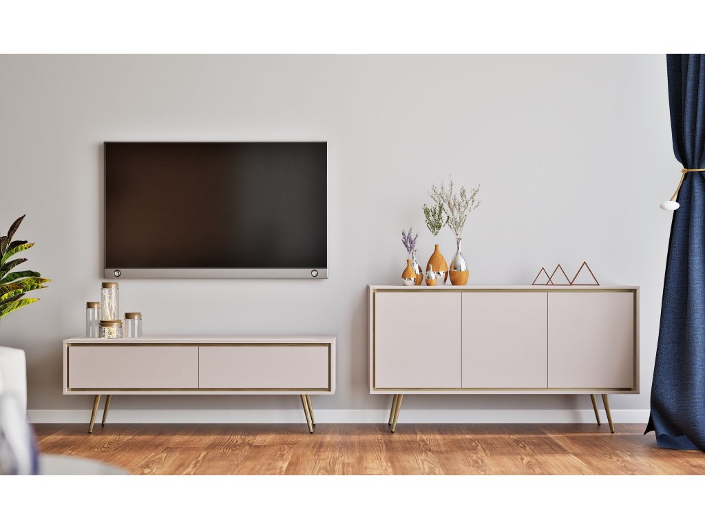 moderní televizní stolek je dostatečně prostorný a zaujme svým atraktivním vzhledem. Moderní barva kašmír je hitem sezony.
