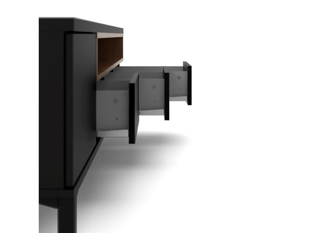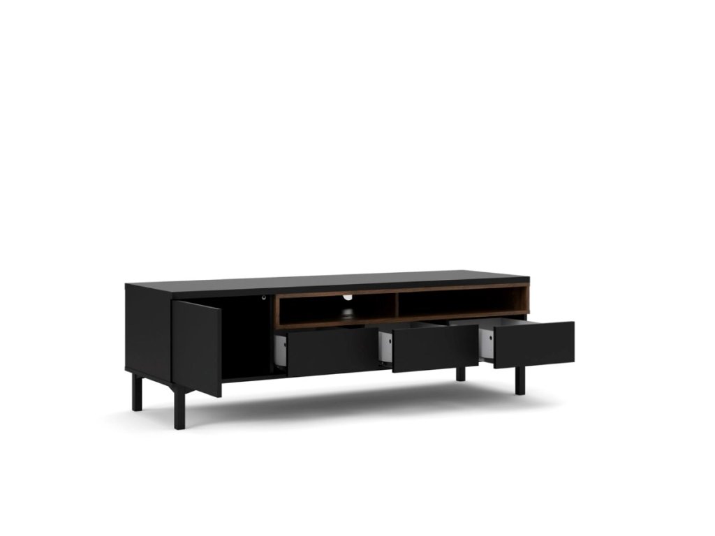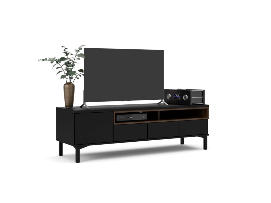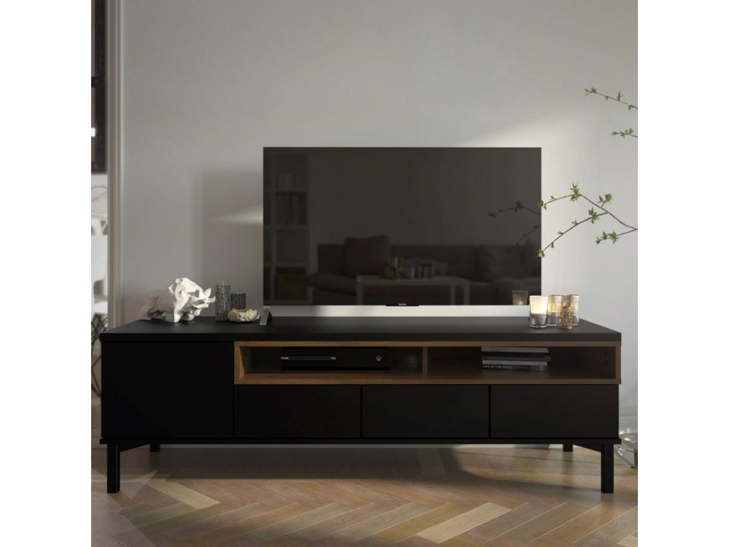 Tv stolek Atrei potěší nejen milovníky skandinávského designu. Je navržený a vyrobený v nadčasovém designu, který se hodí do každého moderního interiéru. TV stolek má kvalitní zpracování a je vyráběn v souladu s ohledy na životní prostředí a navíc je praktický a funkční. Poskytuje dostatek prostoru nejen pro televizi, ale i pro ostatní elektroniku, jako je např. domácí kino, herní konzole, audio technika atd...Velmi zajímavá a netypická je kombinace černé nebo bílé barvy s dekorem dřeva. TV stolek můžete doplnit dalšími prvky Atrei ve stejném designu, nebo si ho můžete objednat i samostatně a doplnit tak stávající interiér. Stolek je dodávaný v demontu. Součástí balení je schématický montážní návod, včetně všech potřebných spojovacích prvků. Vyobrazené doplňky a dekorace nejsou v ceně.