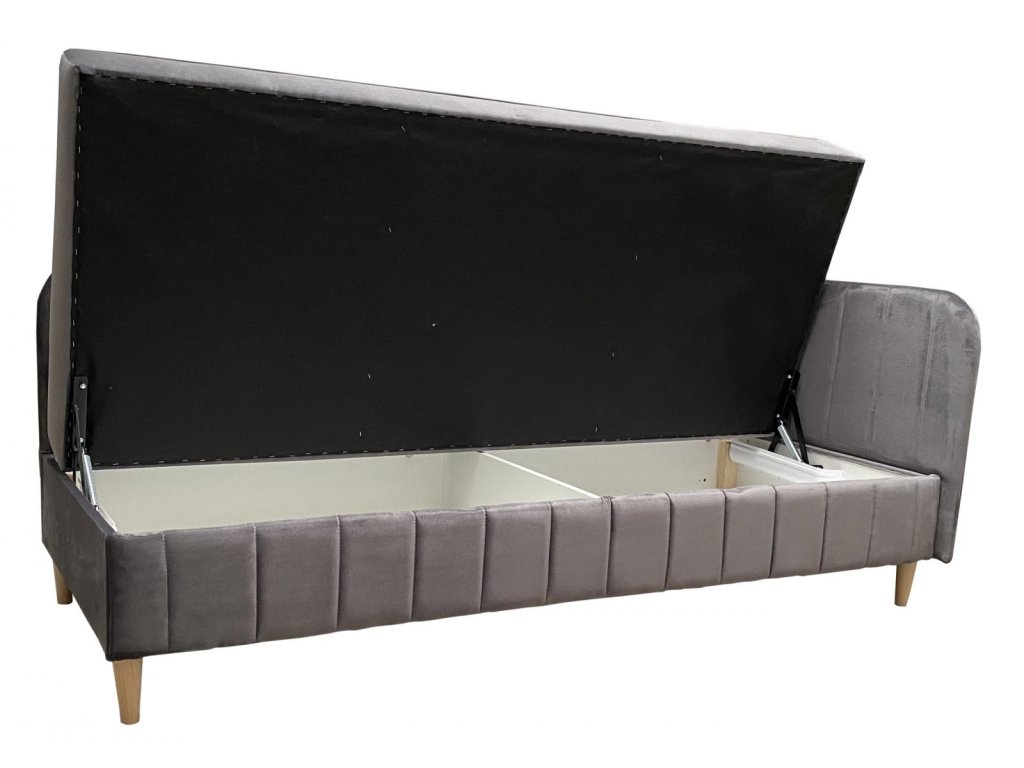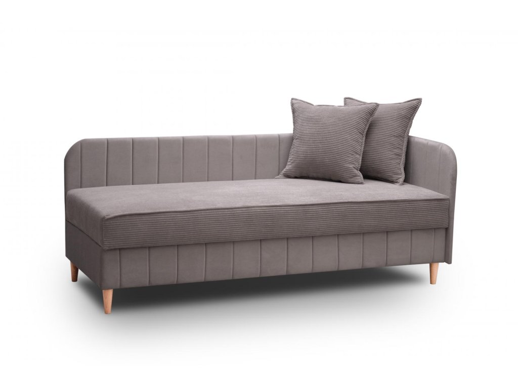 Válenda v moderním designu Biana je vybavena čely a praktickým úložným prostorem, který je přístupný zepředu. Výplň ložné plochy tvoří kombinace pružin bonell s PUR pěnou. Čela válendy jsou univerzální, mohou být umístěna jak na levou tak i na pravou stranu válendy. Válenda je potažena na lehací části kvalitní látkou Poso, která se vyznačuje sametově jemným povrchem a svým typickým vzhledem připomíná manšestr. Korpus válendy a čela jsou potaženy látkou Kronos, která má jemný třpytivý odlesk, je odolná vůči světlu a nežmolkovatí. Vybírat můžete z několika trendy odstínů. Válenda bude dodaná v odstínu, který je vyobrazený v úvodních fotografiích.