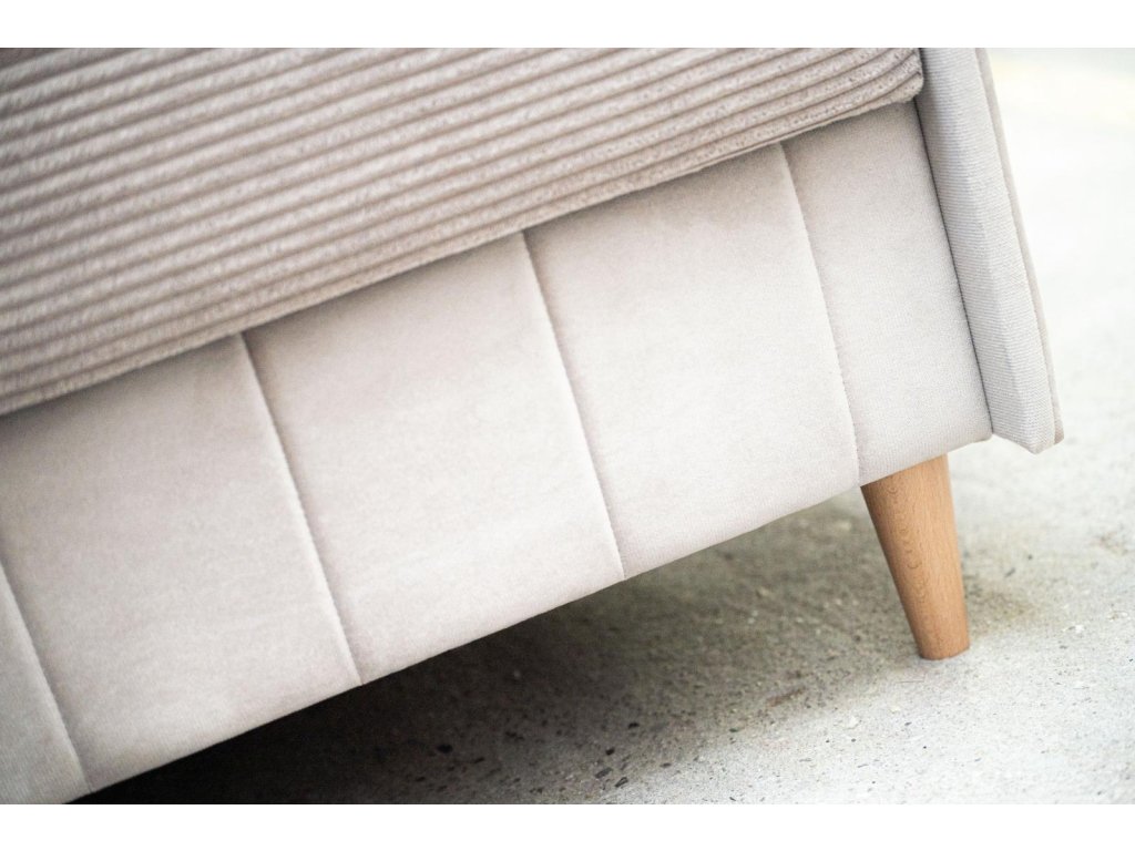 Válenda v moderním designu Biana je vybavena čely a praktickým úložným prostorem, který je přístupný zepředu. Výplň ložné plochy tvoří kombinace pružin bonell s PUR pěnou. Čela válendy jsou univerzální, mohou být umístěna jak na levou tak i na pravou stranu válendy. Válenda je potažena na lehací části kvalitní látkou Poso, která se vyznačuje sametově jemným povrchem a svým typickým vzhledem připomíná manšestr. Korpus válendy a čela jsou potaženy látkou Kronos, která má jemný třpytivý odlesk, je odolná vůči světlu a nežmolkovatí. Vybírat můžete z několika trendy odstínů. Válenda bude dodaná v odstínu, který je vyobrazený v úvodních fotografiích.