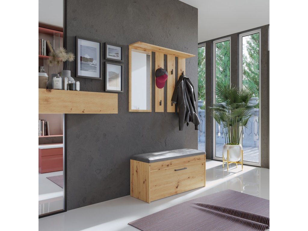 Nástěnný věšák se zrcadlem a policí Pargas splní očekávání všech, kteří oceňují kombinaci elegance a praktičnosti. Je ideálním řešením pro každou předsíň – ať už malou, nebo prostornou. Nábytek je vyroben z kvalitního lamina, které je snadno udržovatelné a odolné proti oděru, dlouhou životnost nábytku zajišťují hrany zakončené odolným ABS materiálem.