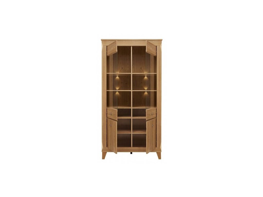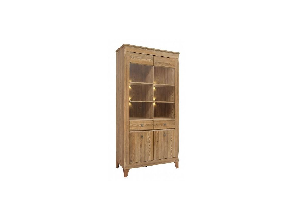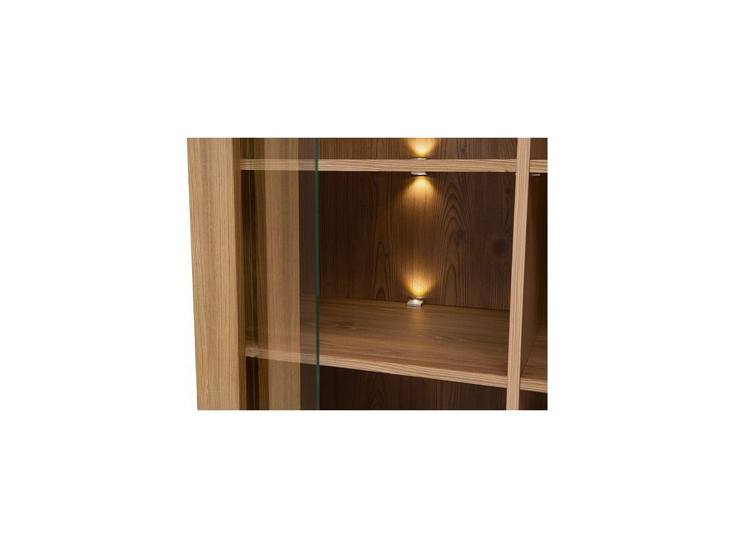 Dvě police za prosklenými dvířky jsou ideálním místem pro uložení vašich oblíbených knižních titulů, vystavení různých sbírek, dekorací nebo suvenýrů. Police jsou efektně nasvíceny LED diodami. Dále jistě oceníte užitečnost dvoudveřové skříňky ve spodní části, která skryje hravě vše, co chcete mít zároveň pěkně po ruce. Dvířka jsou na pantech FGV s brzdou.