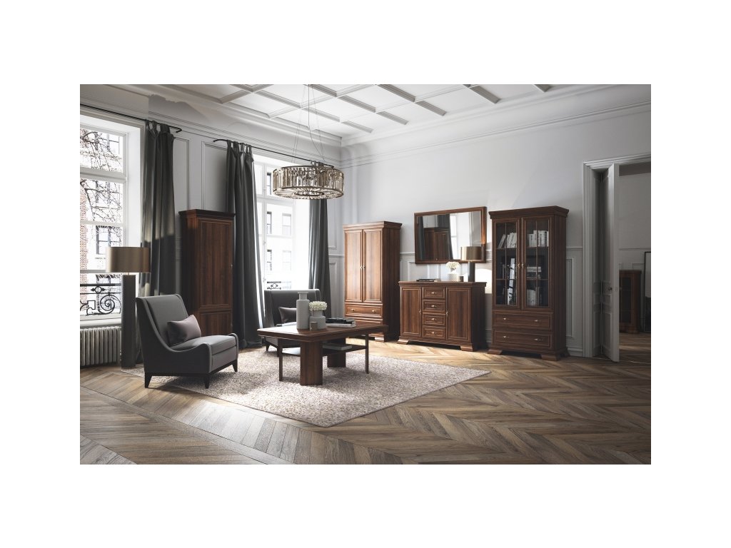 Kolekce v rustikálním stylu. Na výběr jsou 2 barevné provedení borovice Andersen nebo Samoa king. Kolekce je obsáhlá komponenty a proto z nich lze utvořit velmi zajímavý obývací pokoj, ložnici nebo jídelnu. Ať už bude nábytek kdekoliv v domě budete nadmíru spokojeni. Vyroben je z kvalitní laminované dřevotřísky. Kovové úchytky podtrhnou design celé kolekce. Celý nábytek je zdoben vyřezávanými ornamenty. Vitríny lze doplnit o LED osvětlení které je za příplatek.