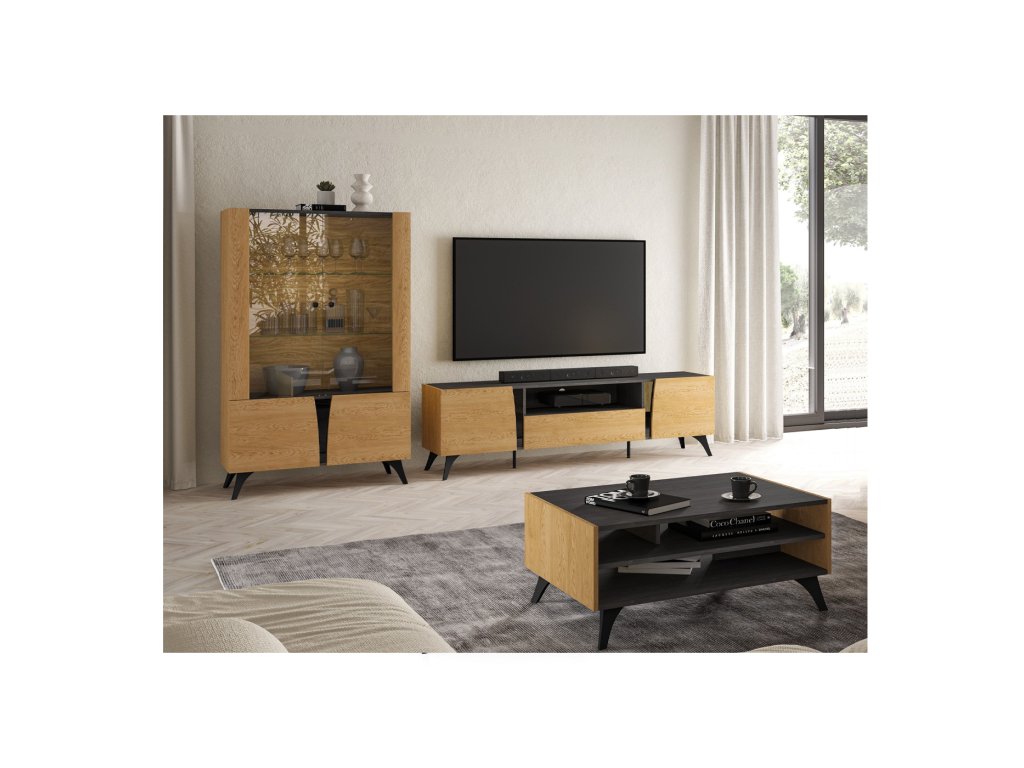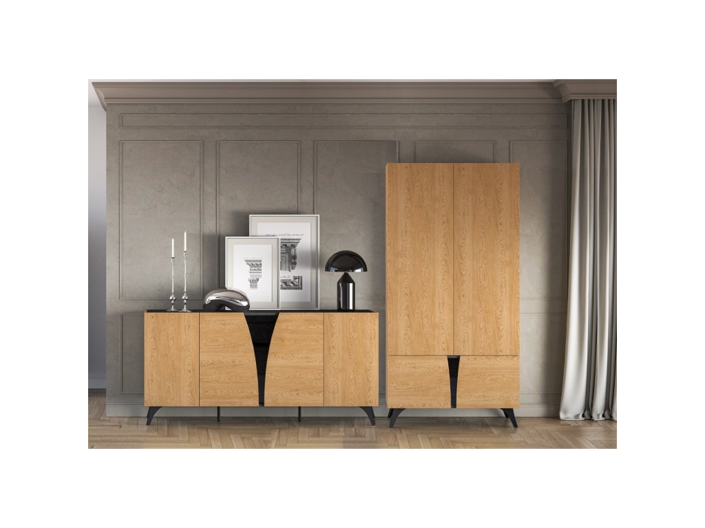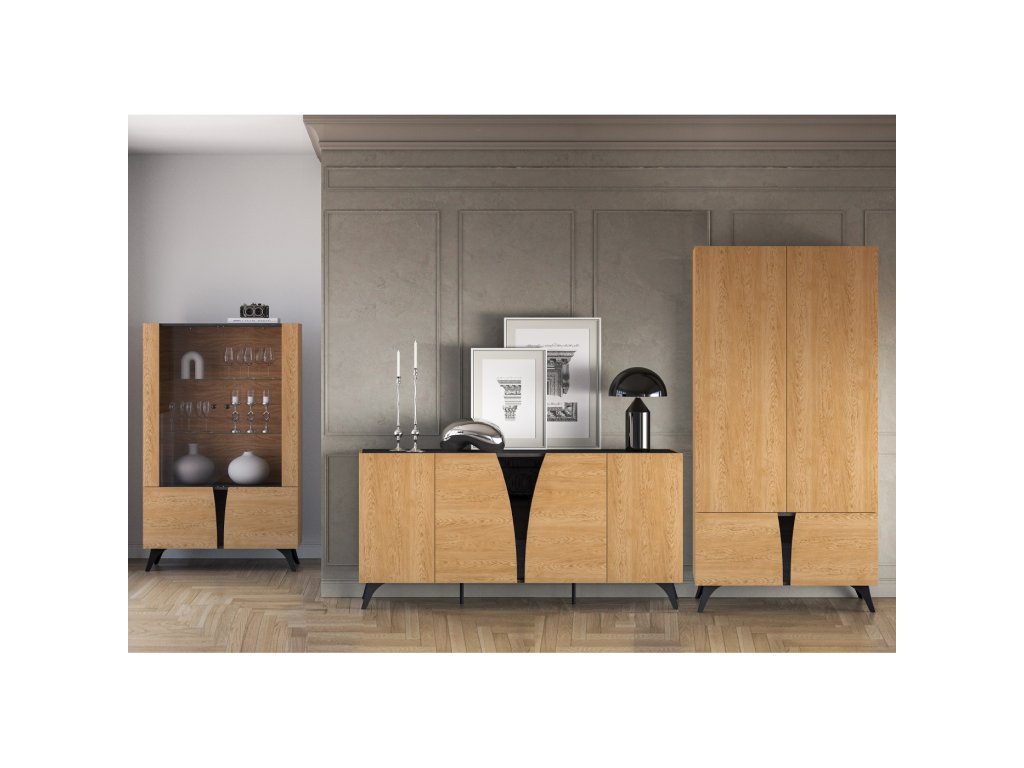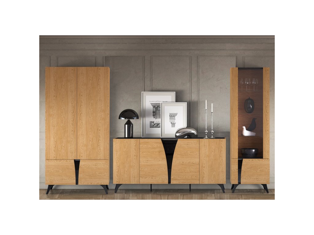 Toscania je elegantní nábytek, který zapadne do jakéhokoliv interiéru. Klasická kresba dřeva v kombinaci s černou lesklou vsadkou splňuje trendy moderního bydlení. Předností jsou tvarované vysoké nohy, které jsou velmi praktické a žádané. Tento nábytek se krásně sladí s ostatními bytovými doplňky a Vy se tak díky nabízeným dílům sestavíte pokoj přesně podle Vašich představ, kde se budete cítit dobře a bezpečně.