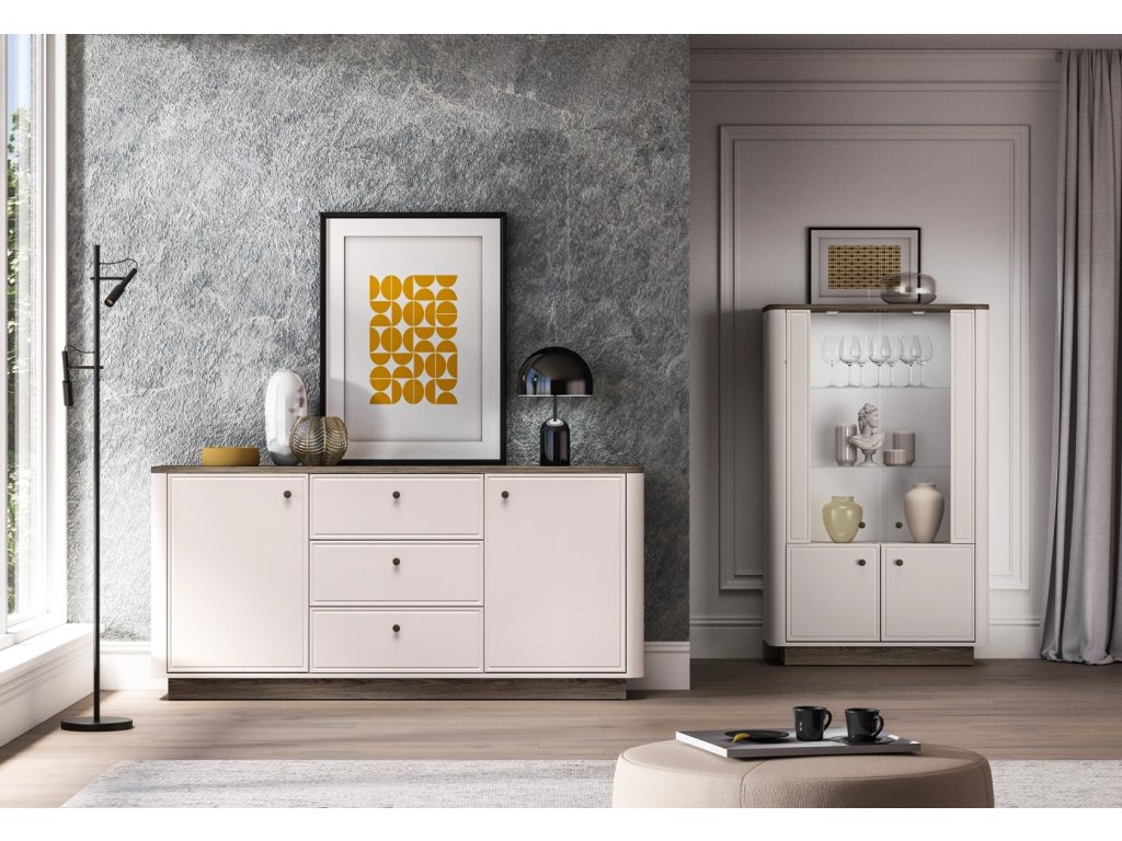 Kolekci Vilavio zdůrazňují zaoblené boky, které dodají nábytku příjemný charakter, estetiku a čistotu. Dotek moderního pohodlí vnese do místnosti nádech luxusu, lehkost a příjemný pocit rovnováhy. Moderní a jednoduché provedení zapadne do jakéhokoliv interiéru a krásně se sladí s ostatními bytovými doplňky. Tento sektor oživí Váš domov a budete se tak cítit velmi uvolněně a bezpečně.