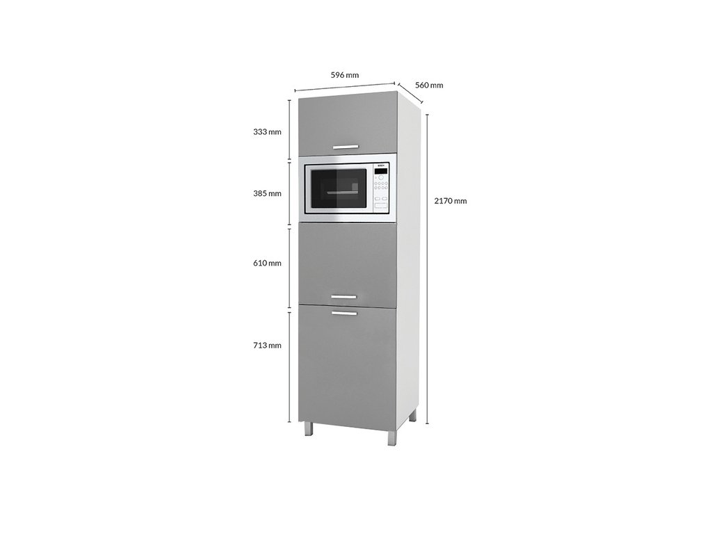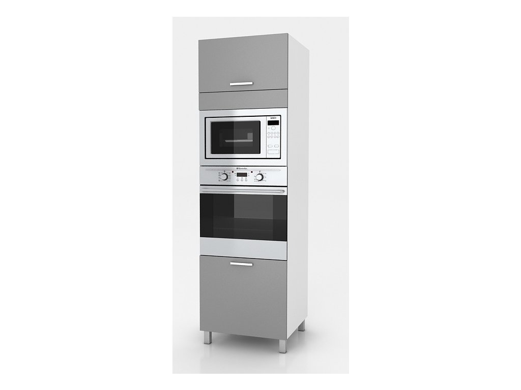 Moderní kuchyňská skříňka na vestavnou troubu a mikrovlnku, kterou je možné objednat v matu nebo ve vysokém lesku. Korpusy skříněk jsou v bílé barvě. Úchyty jsou kovové typu reling v šedém provedení. Skříňky jsou vyrobeny z foliované MDF. Prostor ve skříňce mimo vestavnou část se ideálně hodí jako potravinová skříňka na trvanlivé potraviny. Barvu si můžete vybrat ze vzorníku viz obrázky v doplňkových fotografiích. Svou vysněnou kuchyň si můžete sestavit buď z jednotlivých skříněk nebo skříňky dokoupit ke kuchyňské sestavě. Skříňka je dodávána v demontu.