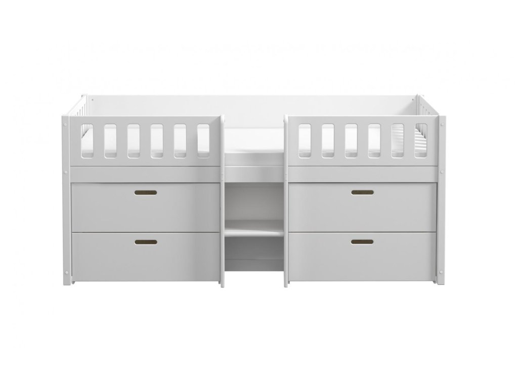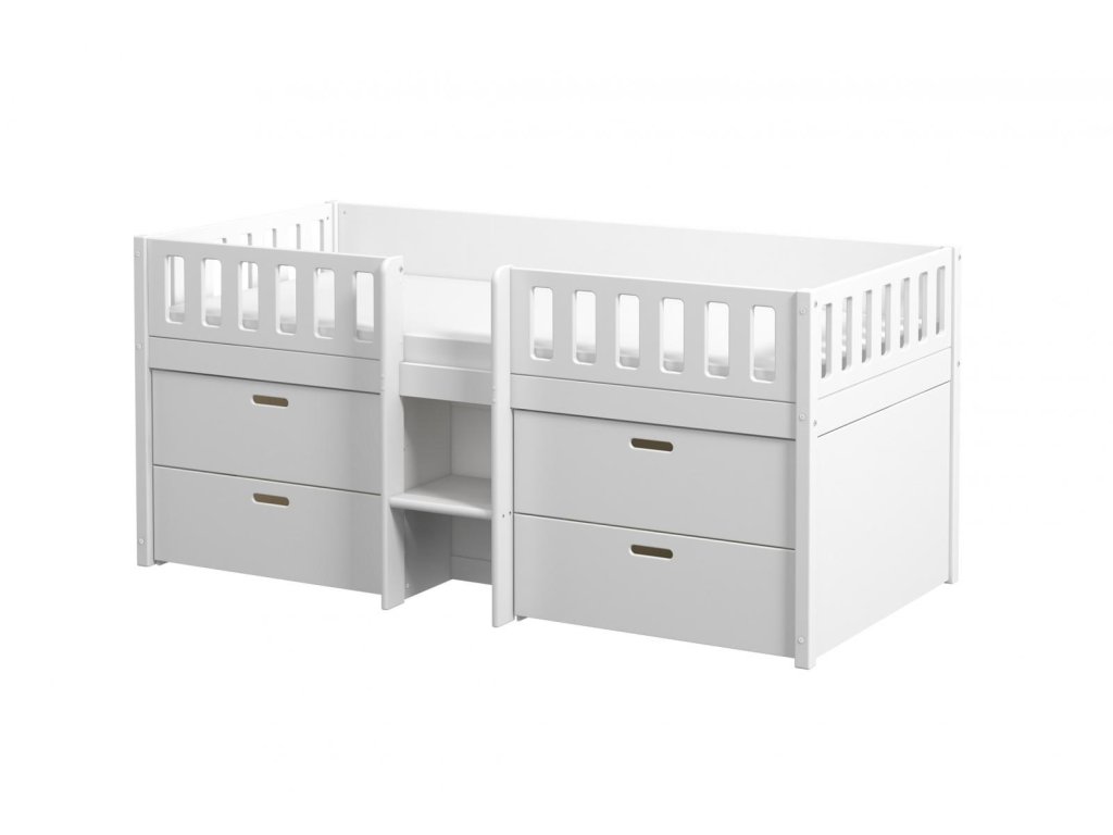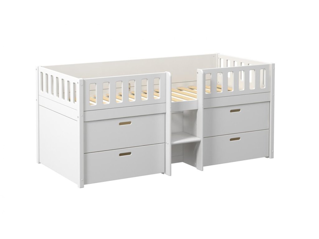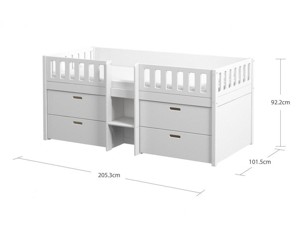 Vyvýšená postel se 4 zásuvkami a výškou 92 cm je dokonalým přechodem z dětské postele. Postel poskytuje útulné a bezpečné místo na spaní, zatímco zásuvky a police pod ní spoustu prostoru pro uložení hraček a oblečení. Přední bezpečnostní lištu lze později odstranit.