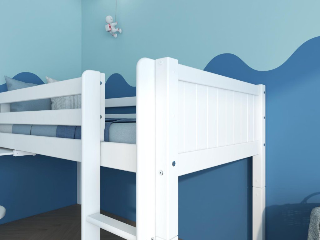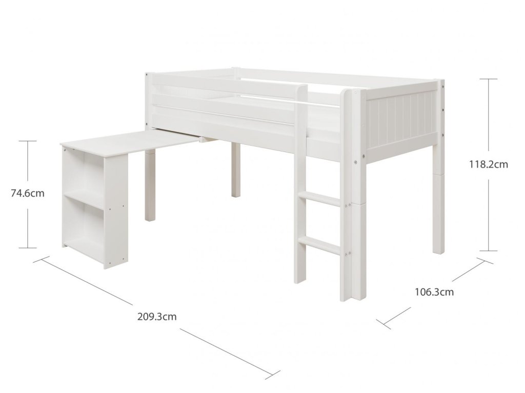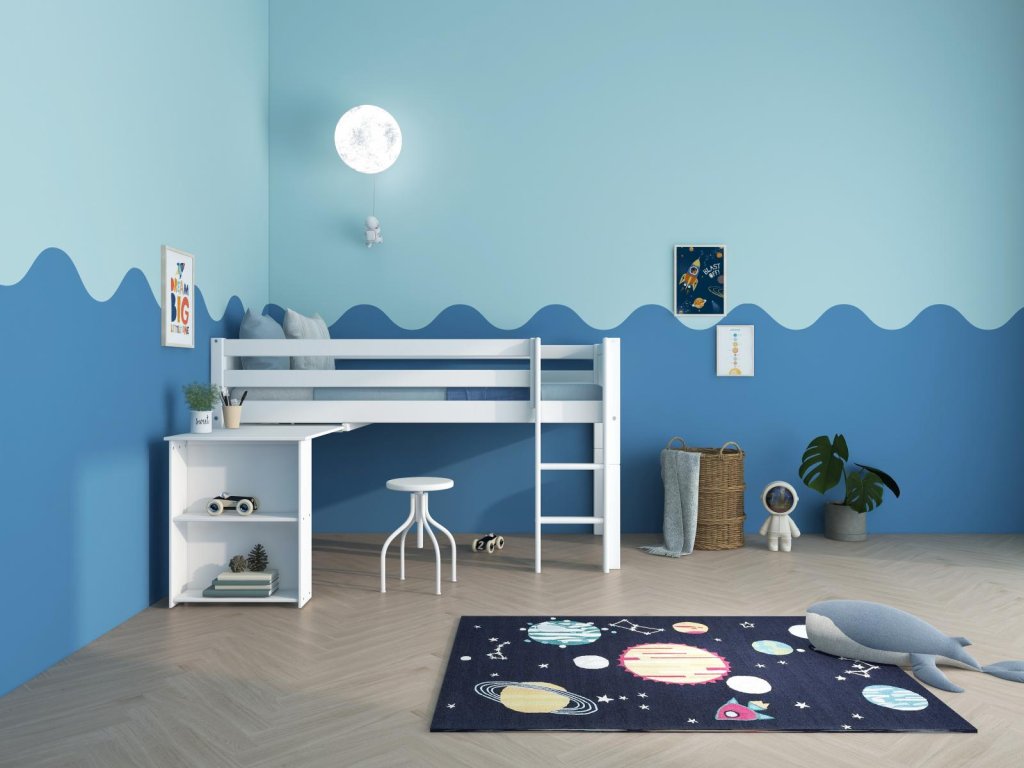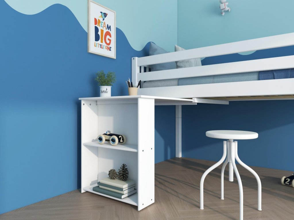 Vyvýšená postel s výsuvným psacím stolem poskytne úžasný prostor pro hraní pod postelí, uložení všech hraček, které vaše děti mají, ale také pro studium a další kreativní aktivity.
